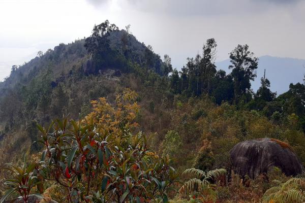 Rừng thông ba lá trên đường leo núi. Lần lượt tôi chìm vào lớp cỏ đuôi chồn, bạch đàn, lớp rừng thông ba lá, lớp "vườn đá" từ thấp đến cao. Các lớp rừng được nối với nhau bằng con đường mòn hơn 3 km có dấu chân của bà con Jrai và của cả những lữ khách leo núi.