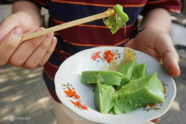 Bánh đúc ăn kèm mật đường ngọt thơmLoại bánh đúc xanh này chỉ tròn vị khi ăn với mật. Cách đây mười mấy năm, mệ Gái làm mật từ thứ mật mía mua ở làng Văn Xá cách trung tâm TP Huế chừng 12 km về phía bắc. Mật được nấu lên và thêm một ít nước cốt chanh cho thơm. Giờ đây, Văn Xá không còn sản xuất mật mía nên bà dùng đường cát trắng để nấu mật. Bà nói "Thứ mật đường này cũng khó tính lắm: trời lạnh thì đông đặc khó múc nên chỉ đi bán vào những ngày trời ấm nóng".