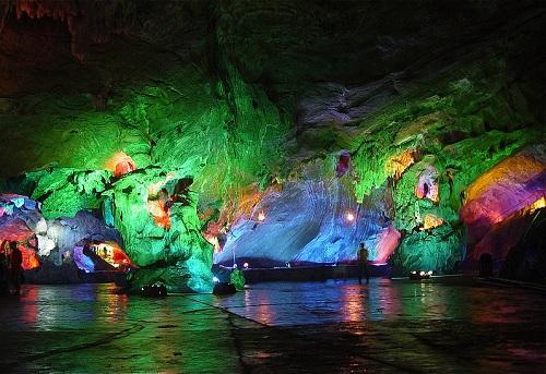 Đi bộ dưới lòng đất trong động Shanjuan, chiêm ngưỡng những thành đá đẹp và cột đá tuyệt vời với ánh sáng màu sắc, tự nhiên của thiên nhiên là những trải nghiệm huyền ảo, khó quên đối với du khách. Ảnh: China Connection Tours.
