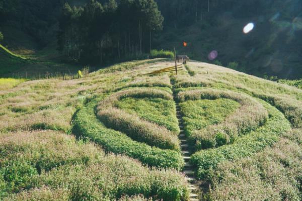 Vườn hoa được cắt tỉa hình trái tim. Trong vườn bày nhiều tiểu cảnh như xích đu, chòi nghỉ phục vụ khách "sống ảo". Sau khi ghé xem hoa tam giác mạch, đừng quên check-in với cung đường chữ S trên đường tới Mộc Châu. Tại Mộc Châu, có thể thưởng thức lẩu sữa tươi, dâu tây và các món ẩm thực Tây Bắc đặc sắc.