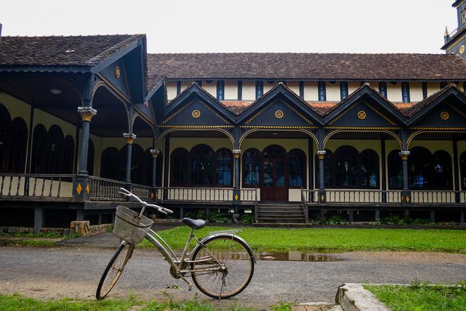 Tòa giám mục trải dài 100m, có ba tầng. Trong đó, tầng một được xây bằng gạch và bê tông, còn hai tầng trên là hệ kết cấu khung gỗ, mái nhà lợp ngói.