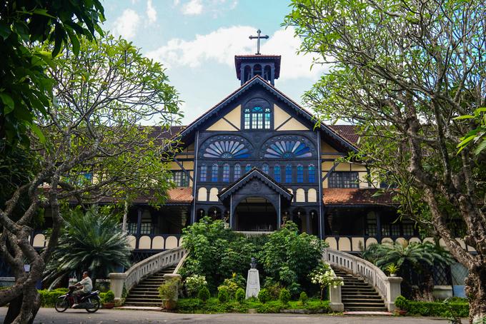 Được làm hoàn toàn bằng gỗ cà chít nên công trình hay được gọi là nhà thờ gỗ. Kiến trúc sư thiết kế khu nhà theo phong cách Roman kết hợp với kiến trúc nhà sàn của người Ba Na. Trên đỉnh tháp là cây thánh giá bằng gỗ quý cao vút, thể hiện sự uy nghiêm và vĩnh cửu của ngôi thánh đường.