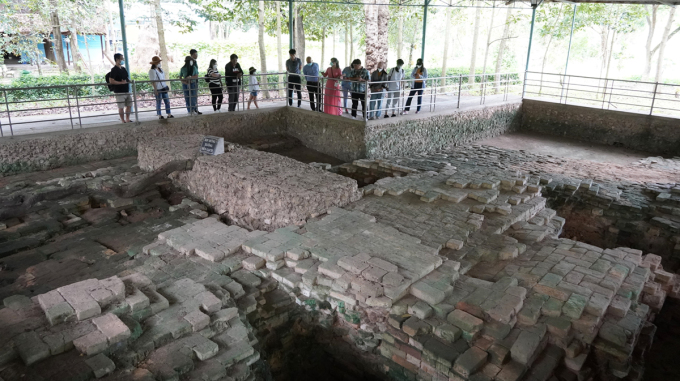 Khách tham quan di tích Óc Eo tại Gò Tháp (Tháp Mười, Đồng Tháp). Ảnh: Hoàng NamCách trung tâm TP Tân An khoảng 70 km, du khách đến điểm dừng chân đầu tiên: Di tích Gò Tháp, thuộc địa bàn hai xã Mỹ Hòa và Tân Kiều, huyện Tháp Mười. Đây là một trong 34 di tích quốc gia đặc biệt của Việt Nam và là một trong hai di tích lịch sử và khảo cổ quan trọng trong cả nước. Hành trình tiếp tục từ Gò Tháp Mười, Miếu bà Chúa xứ, Gò Minh Sư, Chùa Tháp Linh dọc theo những con đường lát đá cổ kính, rêu phong, dưới bóng mát của những thân cây hàng trăm năm tuổi như trôm, sao, dầu.