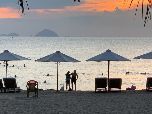Bình minh trên bãi biển Nha Trang (ảnh: ANDREW EAMES).Quãng đường tiếp theo từ Nha Trang đến Đà Nẵng, cũng là chuyến đi qua đêm và đến nơi tương đối sớm. May mắn thay, các tài xế taxi tại nhà ga biết chính xác những gì tôi muốn, chỉ cần 30 phút đi xe là đến bờ sông trong thành phố Hội An tuyệt đẹp. Trong khi Nha Trang khá vắng bóng khách du lịch, thì ở đây, các cửa hàng buôn bán với những vách tường vàng nhạt cổ kính chật ních du khách đến từ châu Á và châu Âu.