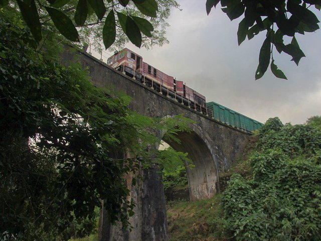 Đoàn tàu đang băng qua cầu vòm Đồn Cả trên đèo Hải Vân (ảnh: T.N).Chuyến tàu này, cũng như những chuyến khác, có một toa phục vụ ăn uống. Nhưng chẳng có gì nhiều ngoài mì gói và trứng luộc. Bữa đó, tôi vui vẻ ngồi trong toa tàu ăn bữa cuối cùng của mình để đánh dấu kết thúc cuộc phiêu lưu trên hành trình xuyên Việt bằng tàu Thống Nhất mang tính biểu tượng của Việt Nam.