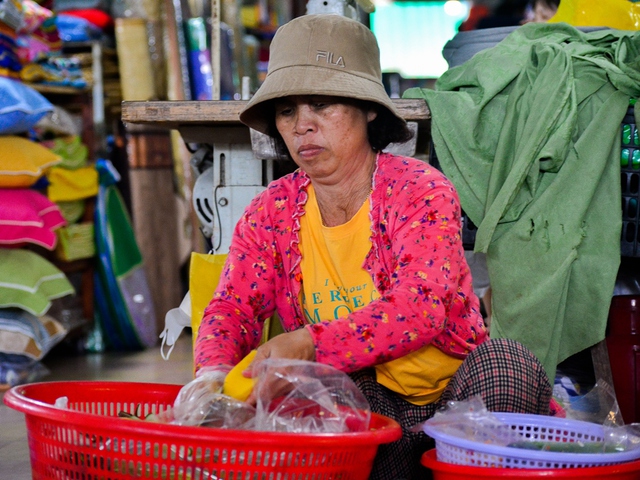 Dù nằm sâu trong khu chợ Hòa Khánh (Q.Liên Chiểu, TP.Đà Nẵng) nhưng gánh gỏi cá Nam Ô của bà Trần Thị Hoa (54 tuổi, trú tại tổ 105, P.Hòa Khánh Nam, Q.Liên Chiểu) khi nào cũng tấp nập người lui tới.