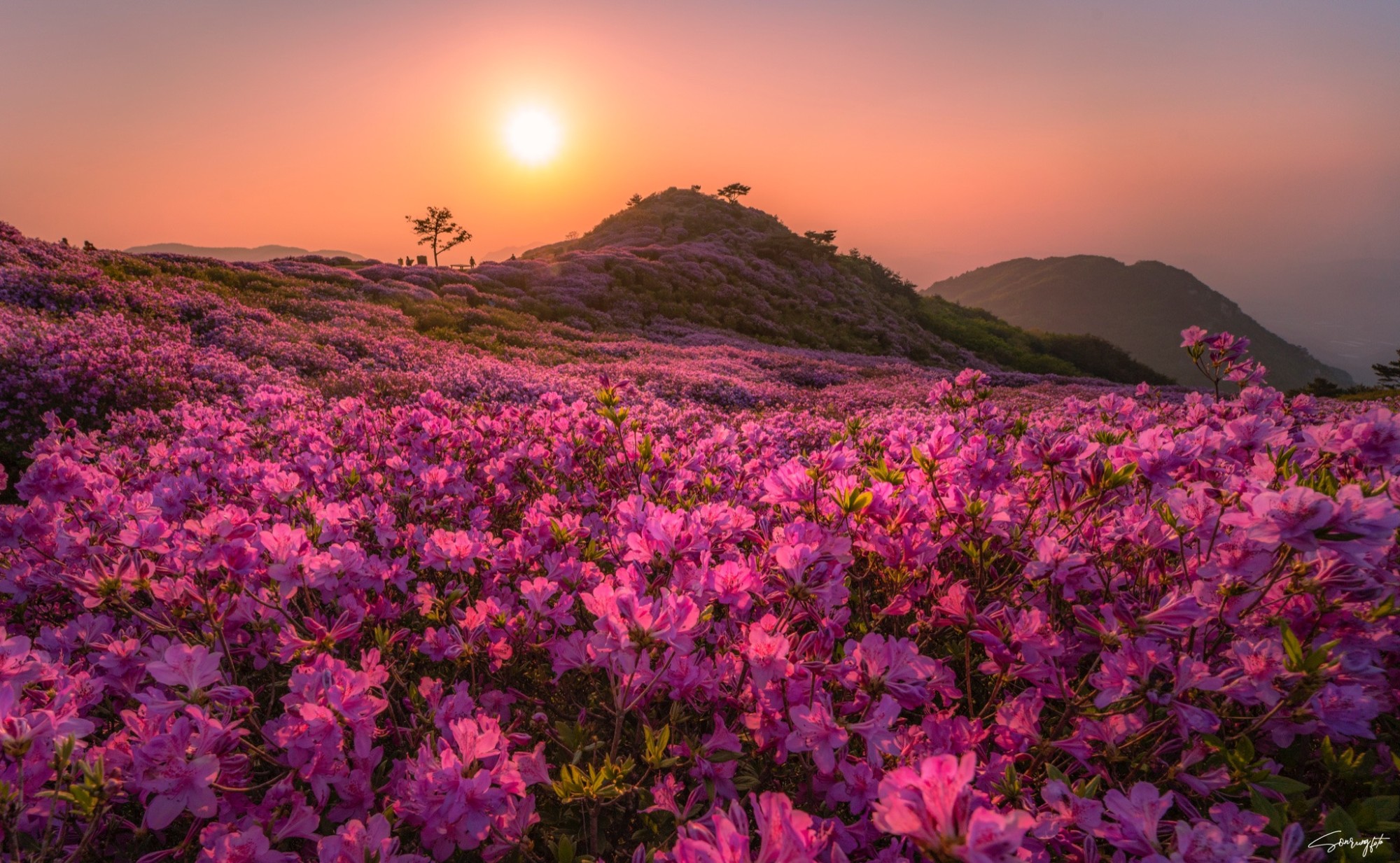 Theo Sơn, mỗi mùa, Hàn Quốc có nét đẹp riêng. Ngoài tới du lịch vào mùa xuân hoa anh đào hay mùa thu lá vàng thì du khách Việt có nên trải nghiệm mùa hè xứ sở Kim Chi. Hoa đỗ quyên khoe sắc ở núi Hwangmaesan, Gyeongsangnam-do mùa xuân