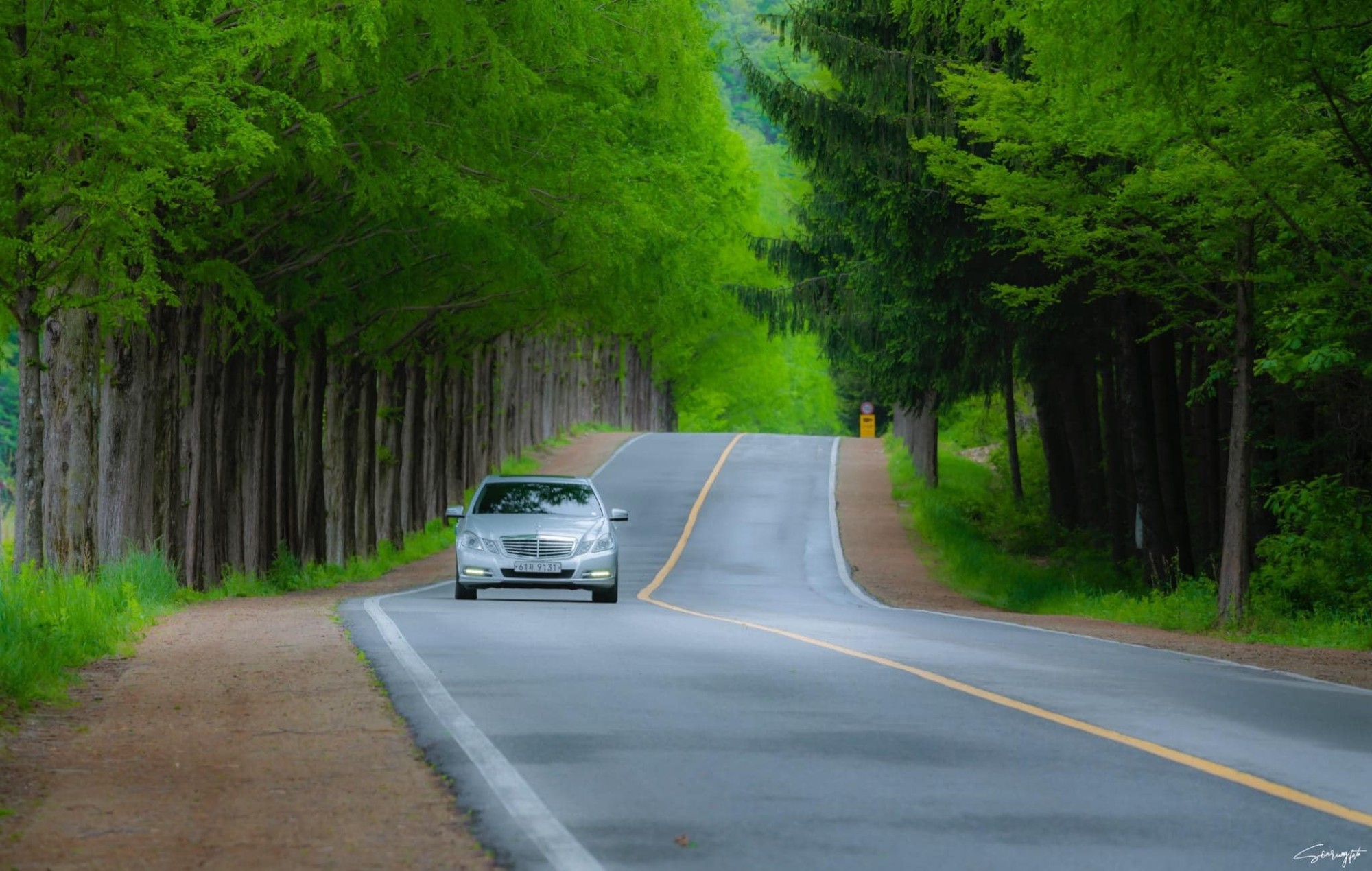 Con đường thủy sam nổi tiếng Hàn Quốc. Tấm hình này sẽ khiến những người mê điện ảnh xứ Kim Chi lập tức nhớ tới bộ phim "Hương mùa hè" - bộ phim trở thành bệ phóng đưa dàn diễn viên: Song Seung Hun, Son Ye Jin, Ryu Jin và Han Ji Hye khẳng định tên tuổi, từng bước trở thành những ngôi sao sáng giá khắp châu Á