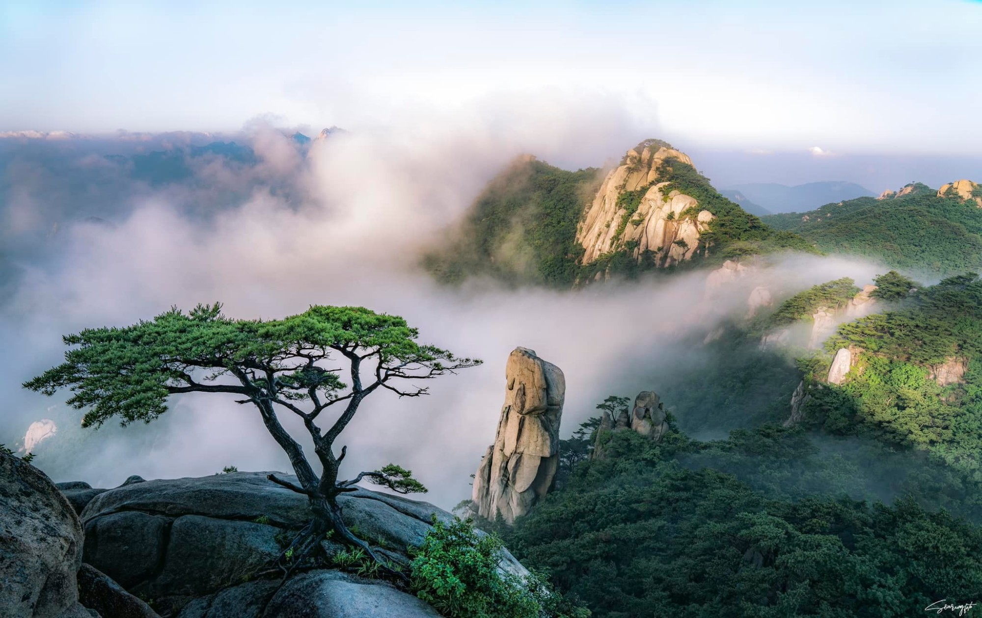 Hình ảnh ngọn núi Dobongsan nằm trong Vườn Quốc gia Bukhansan, bên cạnh thành phố Seoul. Đây là bức hình Sơn mất rất nhiều thời gian và công sức để chụp thành công. Anh đã đến đây 3 lần trong một tháng nhưng không thể săn được khoảnh khắc mây vờn đỉnh núi. Tới cuối tháng 6, khi thấy dự báo thời tiết có tình hình khả quan, anh quyết định leo núi thêm một lần nữa. Lần này, không phụ công chàng trai, khung cảnh hiện ra vô cùng ấn tượng