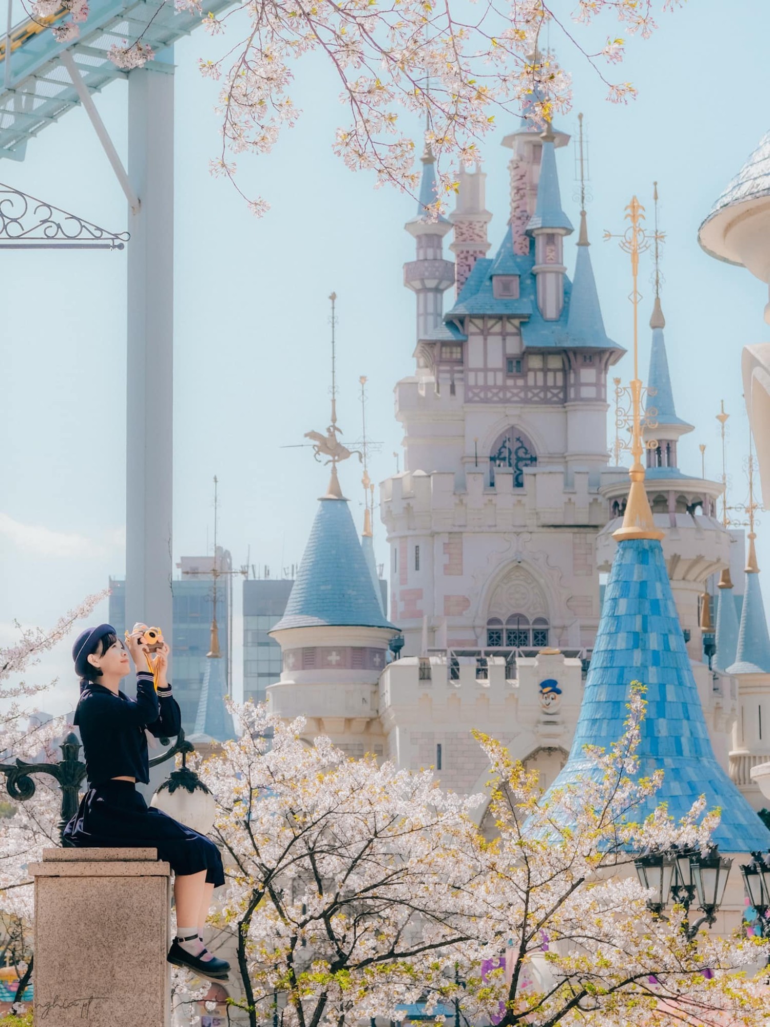 Công viên giải trí Lotte World nằm ở khu vực trung tâm của thủ đô Seoul cũng là một trong những điểm ngắm hoa anh đào thú vị. Đến đây, du khách sẽ ngỡ như đang lạc vào thế giới cổ tích, với những góc check-in đầy màu sắc. Ngoài ra, bạn cũng có thể tham gia các trò chơi giải trí vui nhộn tại công viên.