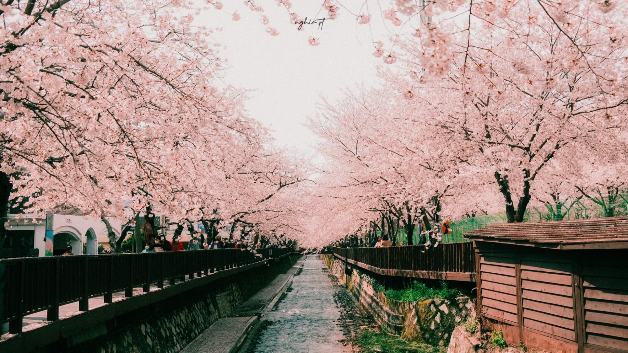 Khu phố rợp bóng hoa anh đào ở Busan, cảnh tượng như bước ra từ phim hoạt hình Anime của Nhật Bản