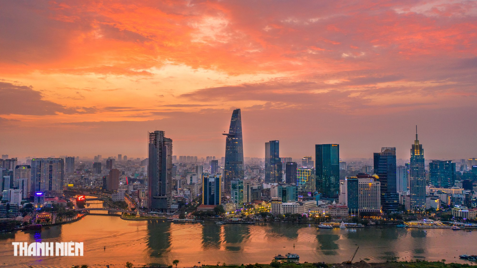 Ánh nắng cuối ngày nhuộm đỏ một góc trời. Bitexco Financial Tower từng là tòa nhất cao nhất thành phố với 68 tầng (262m) (ảnh: BÙI VĂN HẢI)