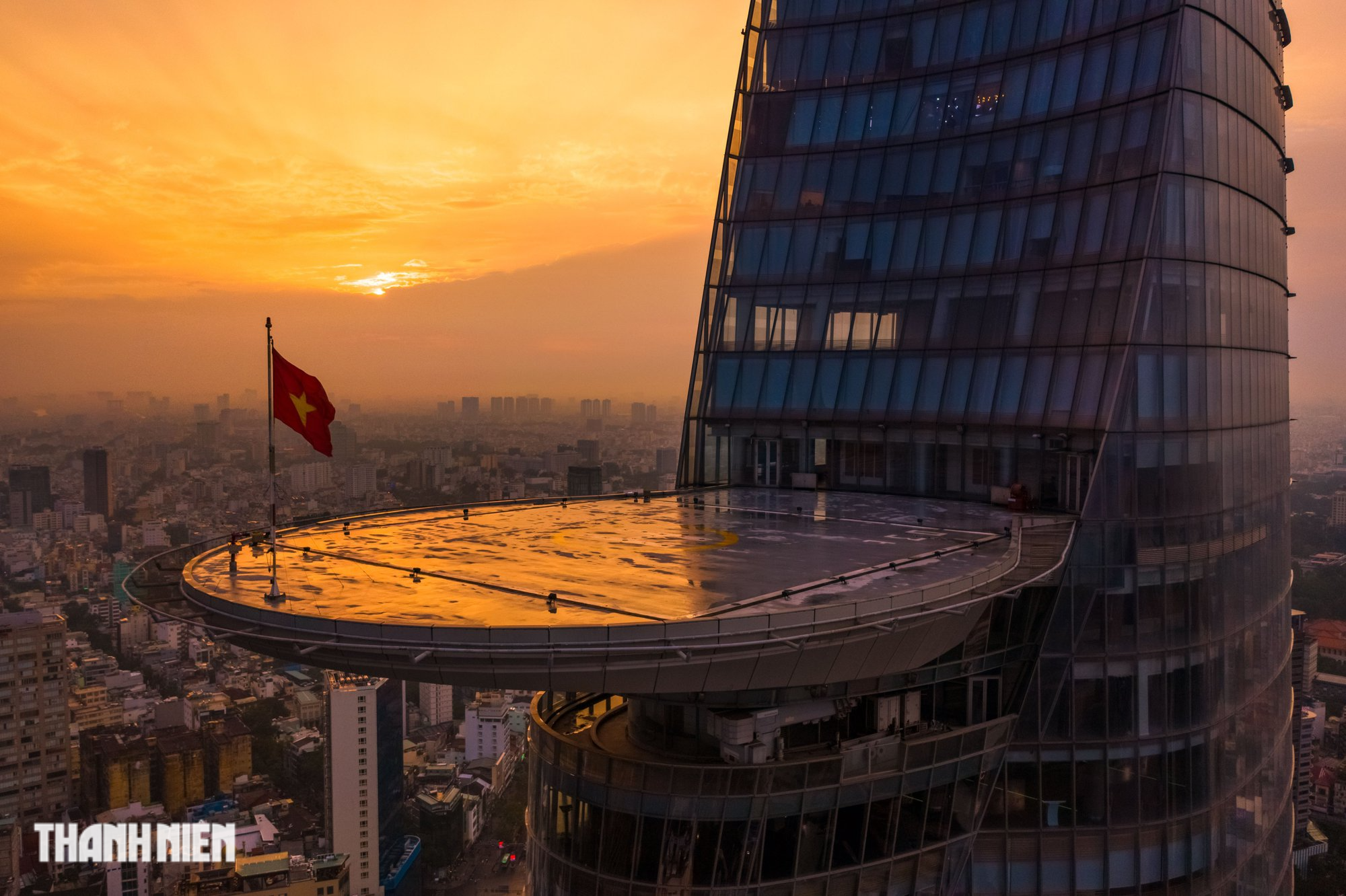 Nằm ở mặt phía nam của tòa nhà là sân đỗ trực thăng ở độ cao 191m, có chiều dài 40m, với 18m kết nối vào kết cấu chính của tòa nhà và 22m nhô ra bên ngoài. Du khách có thể ngắm hoàng hôn từ tòa nhà khi mua vé lên Sky Deck, tầng 49 (ảnh: BÙI VĂN HẢI)