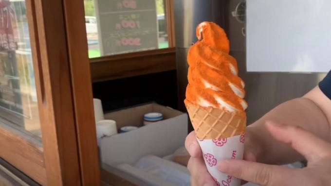 Một phóng viên của chương trình thực tế nổi tiếng ở Nhật Bản đã đến làng Hirata để ăn món kem này. Ban đầu, anh chàng tỏ ra quyết tâm và dũng cảm khi lựa chọn loại cay nhất. Trong lúc ăn, anh đã chảy nước mắt và phải cố gắng hết sức để hoàn thành thử thách. Ngay sau khi ăn, người này phải ăn một chiếc kem lạnh bình thường khác để làm dịu.
