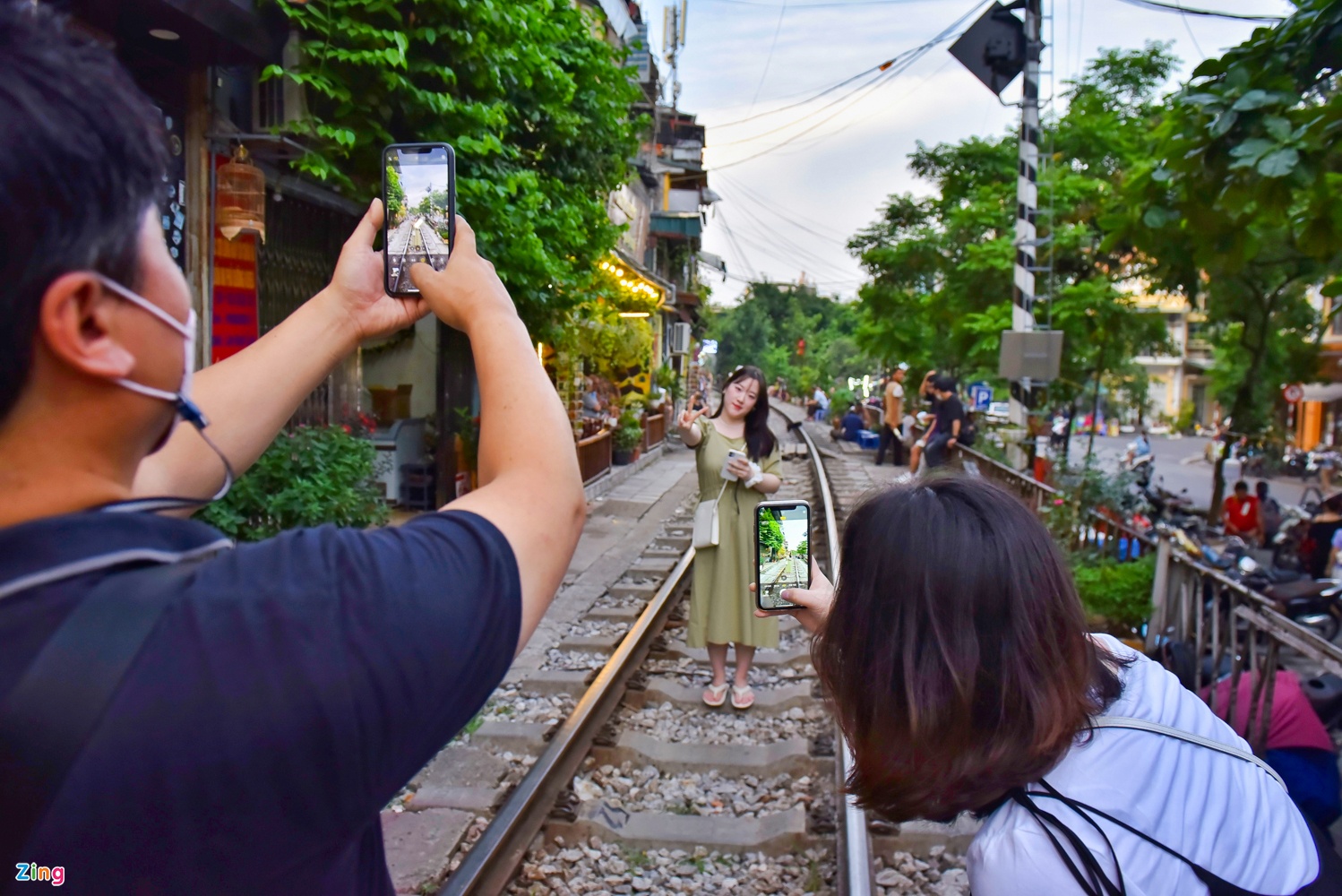 Sau khi đoàn tàu đi qua, du khách lại thoải mái ra giữa đường ray để tạo dáng chụp hình lưu niệm, cảm nhận cuộc sống của người dân sinh sống ven đường tàu.