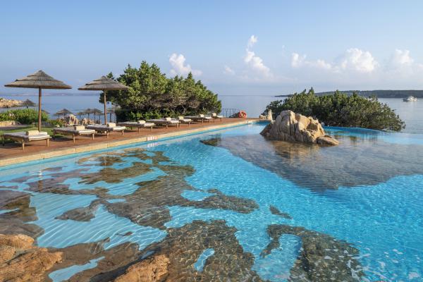 Ảnh: Hotel PitrizzaDù các căn villa đều có hồ bơi riêng, song hồ bơi chính của khách sạn quyến rũ với những tảng đá granite, những chiếc dù lợp tranh và tầm nhìn ra vịnh Liscia di Vacca thơ mộng. Ngoài ra, khu nghỉ dưỡng còn có phòng tập thể dục ngoài trời hướng biển, là nơi lý tưởng cho các ngôi sao thể thao duy trì thói quen.