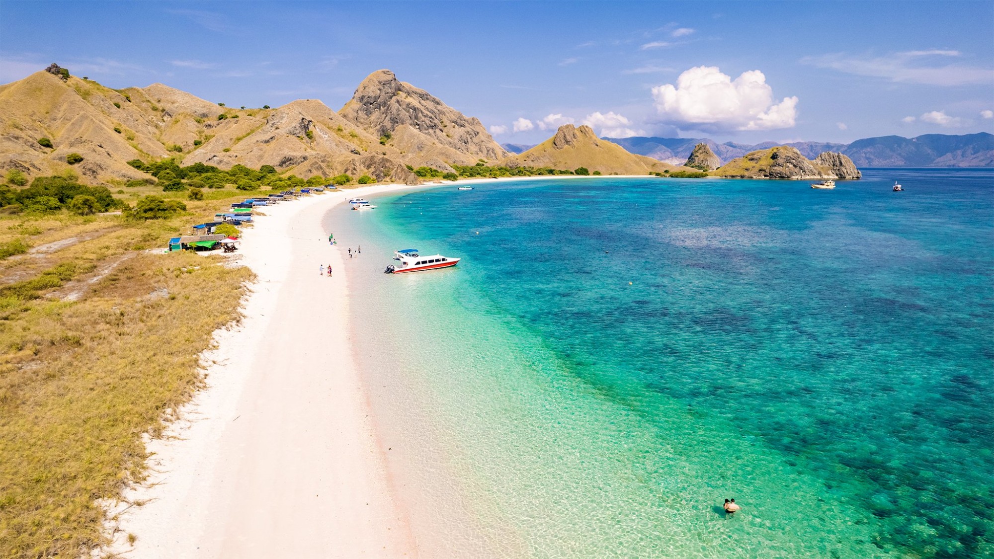 Bãi biển cát hồng nhìn từ trên cao.