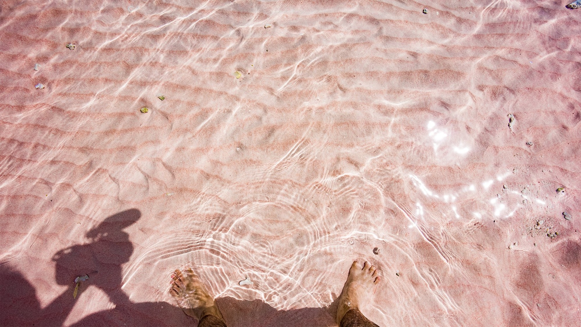 Cận cảnh màu cát hồng. Khu vực quanh quần đảo Komodo có ít khách du lịch, hợp với người muốn du lịch mạo hiểm hoặc thích địa điểm nguyên sơ. Nhắc đến Komodo không chỉ có mỗi loài vật cùng tên. Cảnh vật ở đây như thiên đường hạ giới với các bãi biển nước trong vắt, hoang sơ và bãi biển cát hồng. "Loài rồng này biết chọn nơi sống thật. Đúng là rồng, sống ở nơi tiên cảnh", Thái đùa.