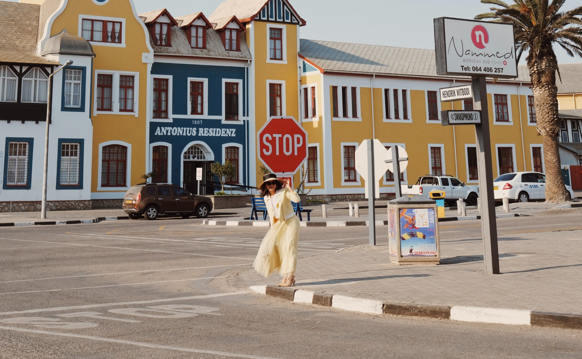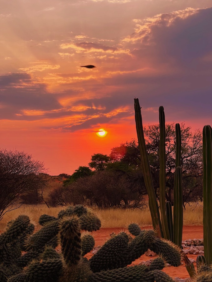 Ấn tượng của cô về quốc gia nằm ở châu Phi này là những con đường đầy cát sỏi, cỏ cháy, bụi cây trơ trọi và hươu chạy băng qua sa mạc Kalahari. Trang có trải nghiệm ngắm bình minh trên những đụn cát ở Sousuvlei, thuộc vườn quốc gia Namib-Naukluft. Cô cũng có những buổi chiều chạy đuổi theo hoàng hôn, ngồi ngắm báo hoa mai thảnh thơi đi lại...
