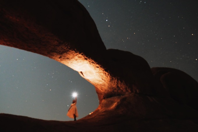 Vào buổi đêm, trải nghiệm yêu thích nhất của nữ du khách là nằm trên mỏm đá thuộc dãy núi Spitzkoppe, ngắm dải ngân hà. Vẳng bên tai cô lúc đó là những âm thanh lạ phát ra từ bầy linh dương mà Trang không thể nhìn rõ mặt do trời tối.