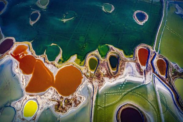Nếu nhìn từ trên cao, hồ nước mặn Xiechi được ví như "Biển Chết" của Trung Quốc, lại rực rỡ như một bức tranh nhiều màu sắc, trái ngược với tên gọi.