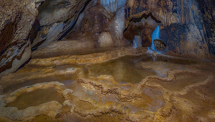 Thạch nhũ tạo nên những hình thù đẹp mắt.Đến thăm khu danh thắng hang Gió, du khách có thể tham quan các hang khác xung quanh như: hang Công Chúa (hang Sân khấu), hang Hoàng Tử (hang Sáng), hang Thiên Đình, hang Dơi, động Thủy Tiên (hang nước).(Nguồn: G.Minh, PetroTimes, 09:20 | 28/09/2022)
