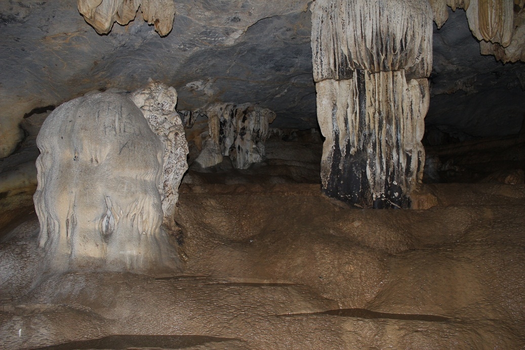 Trần hang cao, nhũ thạch rủ xuống tạo nên nhiều hình thù đẹp mắt như: bức rèm, hình nước chảy, hình các con thú như voi, sến, cò, hình tượng phật, chuông đá, hình ruộng bậc thang như một bức tranh thiên nhiên sống động khi chiếu đèn vào, tạo ra hình ảnh sống động và huyền ảo.