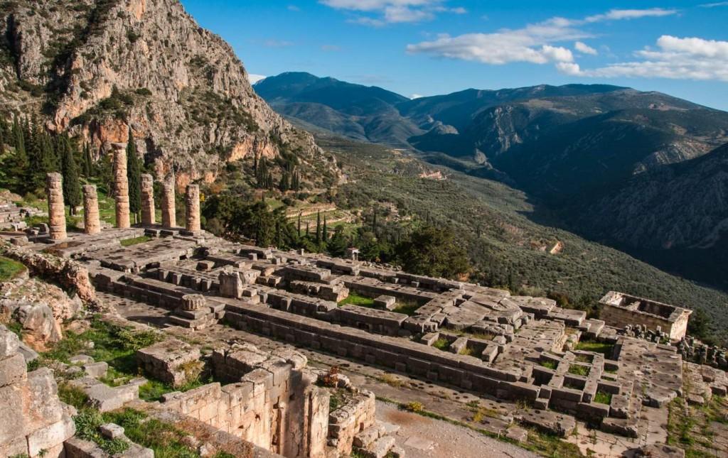 Delphi nằm trên triền dốc Tây Nam của ngọn núi Parnassos, nằm giữa rừng cây ô-liu và cây trắc bách diệp xanh ngát cùng những vách đá cheo leo thẳng đứng. Là trung tâm tôn giáo của Hy Lạp trong thời cổ đại, Delphi được coi là nơi các vị thần từng sinh sống. Những ngôi đền trong khu di tích Delphi đã được UNESCO công nhận là Di sản Văn hóa Thế giới năm 1987. Nổi bậc nhất là khu đền thờ Apollo, vị thần mặt trời và cũng là con trai của thần Zeus. Đồng thời, đây cũng là nơi đặt hòn đá Omphalos - biểu tượng của trung tâm của vũ trụ. Trải qua trận động đất kinh hoàng vào năm 1981, khu đền thờ đã bị ảnh hưởng nghiêm trọng và phải trùng tu nhiều lần. Tuy nhiên, đền Apollo vẫn là một trong những điểm đến tham quan nổi tiếng nhất ở Hy Lạp.