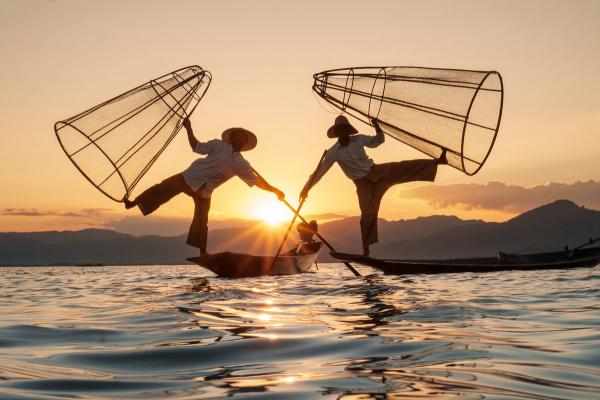 Hồ Inle thuộc bang Shan là điểm đến dành cho du khách yêu thích khám phá cuộc sống của người dân tộc thiểu số. Một trong những tộc người nổi tiếng nhất là Intha, với truyền thống chèo thuyền gỗ, đánh bắt cá bằng một chân.