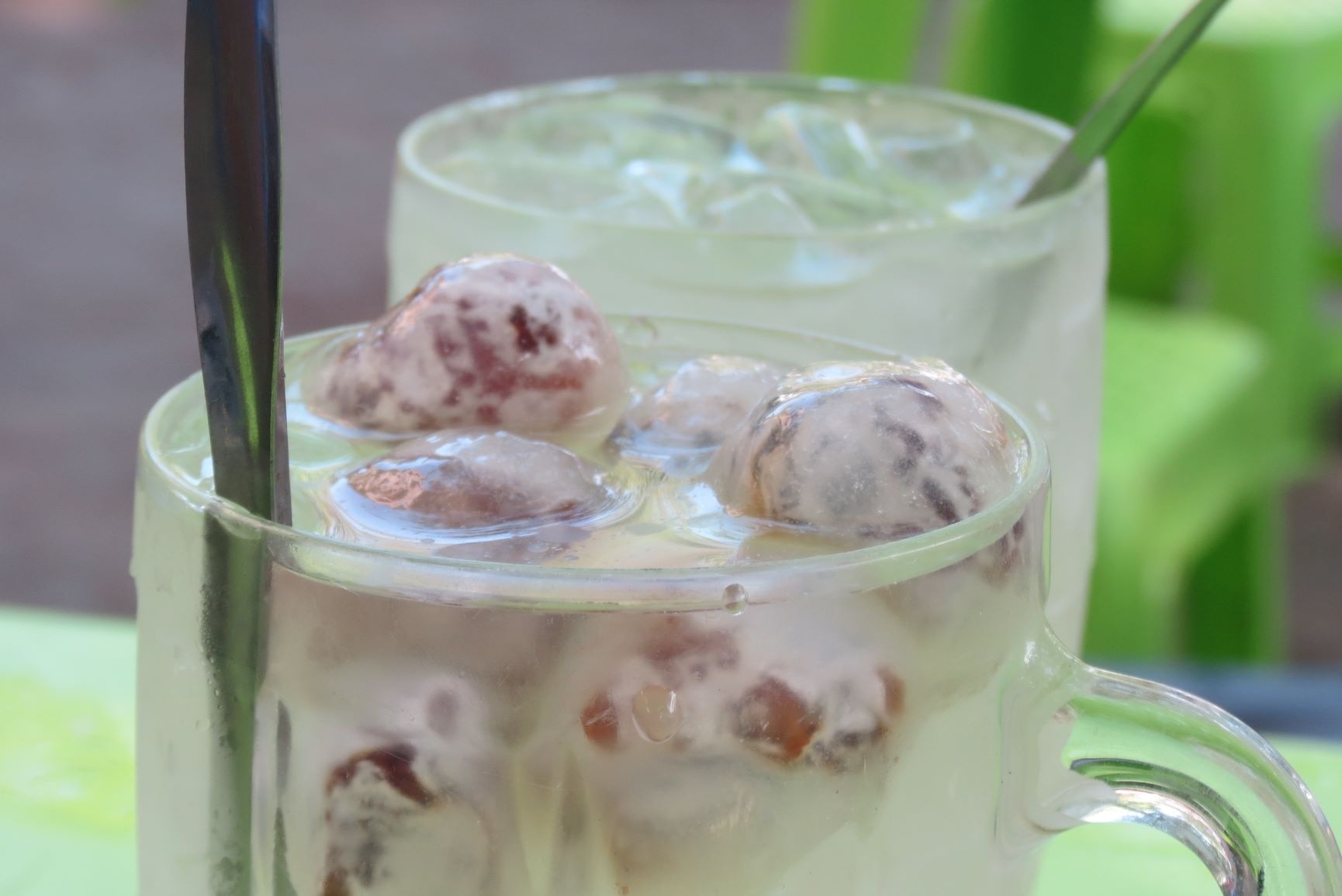 Chè bột lọc bọc thịt được múc ra ly cho thực khách thưởng thức (ảnh: TUYẾT KHOA)Không rõ nguồn gốc thế nào, nhưng nguyên liệu chính làm món này vẫn là bột lọc và thịt. Để làm được món chè ngon, người chế biến cần có sự kỳ công, khéo léo.