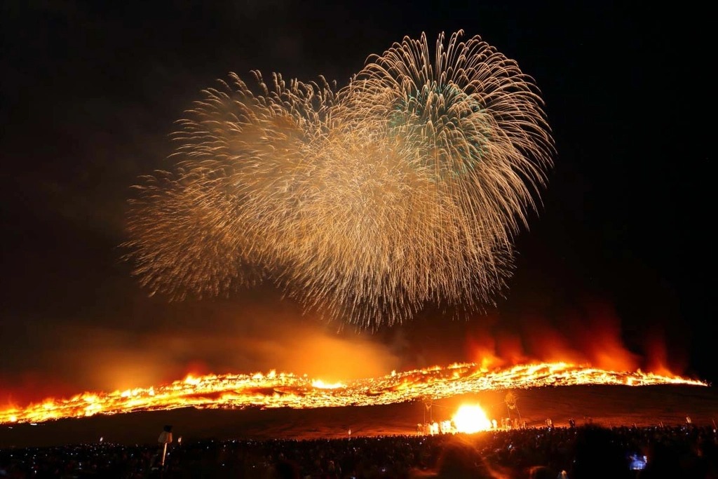 Ngọn lửa bùng cháy trên một diện tích rộng lớn tạo nên cảnh tượng phát sáng trong đêm có thể nhìn thấy từ các khu vực phía xa. Hàng trăm khán giả tập trung tại chân núi Wakakusa, nhưng hàng nghìn người khác theo dõi ngọn lửa từ nội thành thành phố Nara, cũng như các địa điểm khác trong khu vực. Ảnh: event-carnival-com.