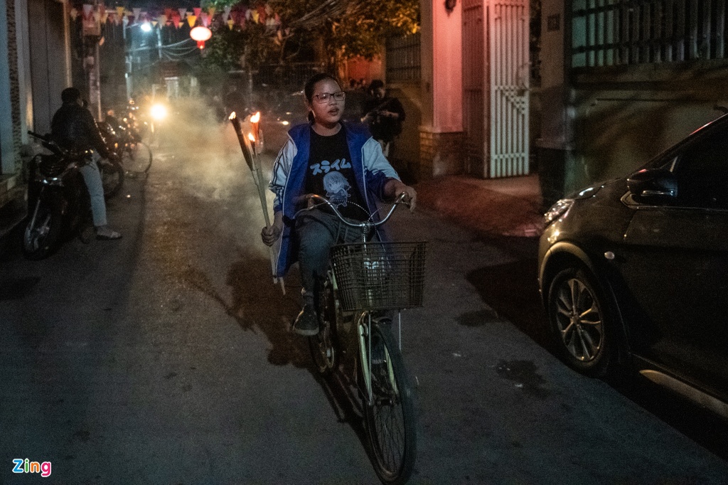 Người dân đều dùng những bó hương to, cố gắng giữ lửa tránh dập tắt trước khi tới nhà.
