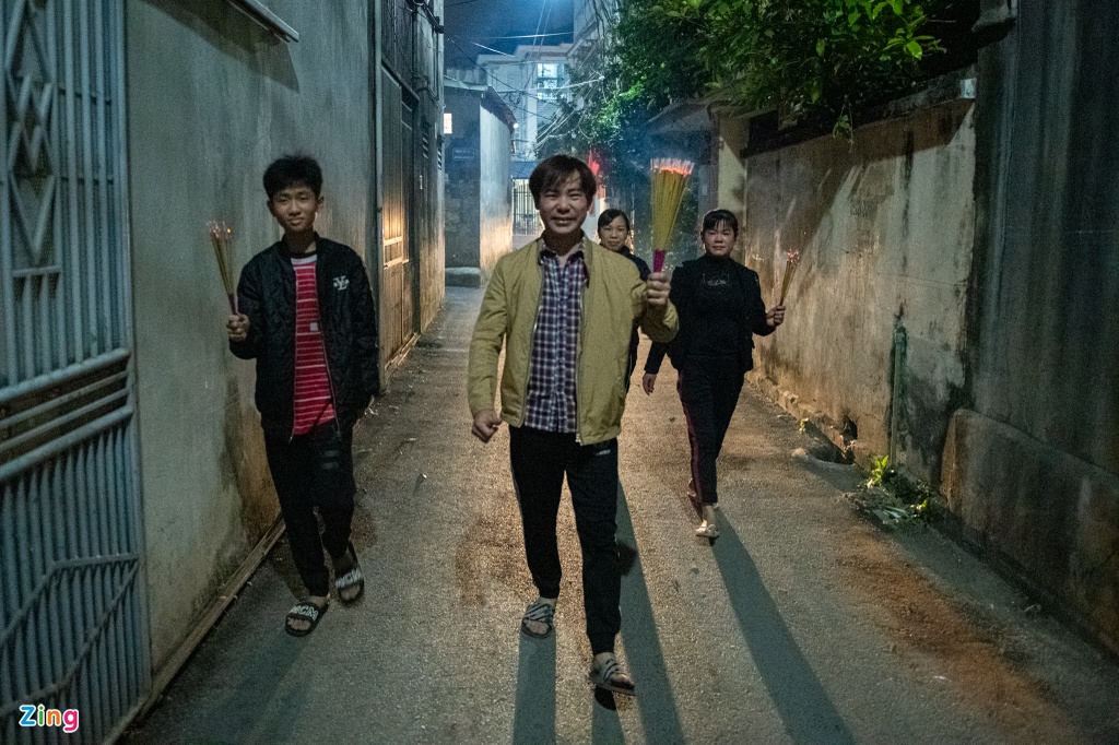 Anh Hải (tổ 6, làng An Định) cùng hàng xóm có mặt lúc 20h, dự lễ truyền thống trong đình rồi "lấy đỏ" về nhà, "Tục lệ được truyền từ đời bố mẹ tôi, hàng năm vào ngày 11 tháng Giêng tôi lại ra đình xin lửa", anh cho biết.