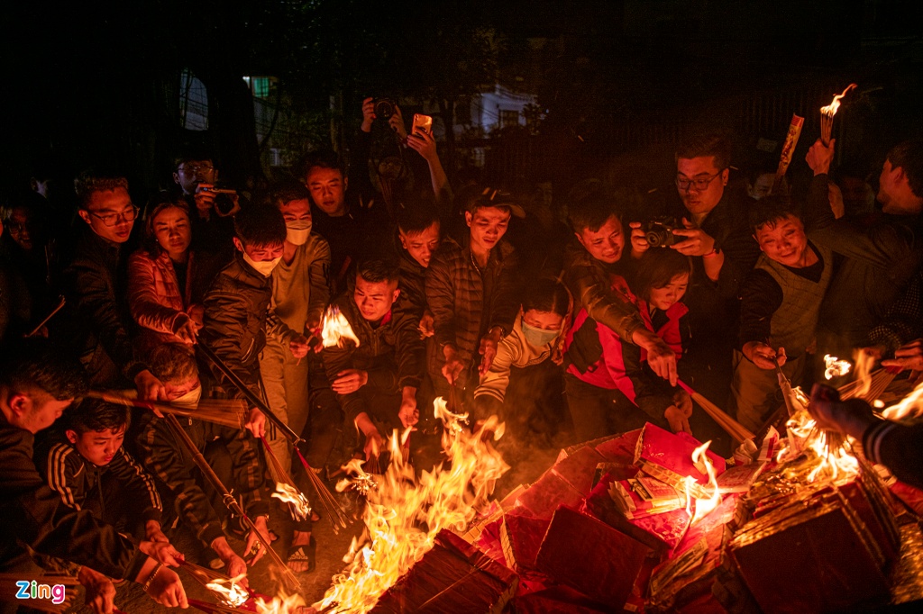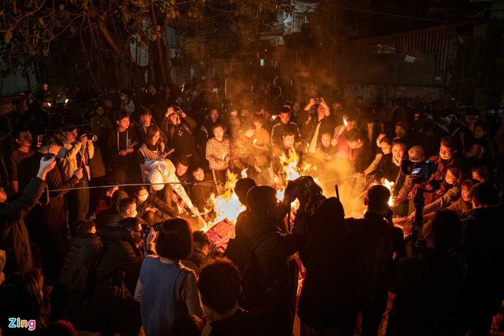 Khi ngọn lửa đốt vàng mã bùng lên, dân làng đổ xô dùng hương châm vào ngọn lửa để lấy đỏ.