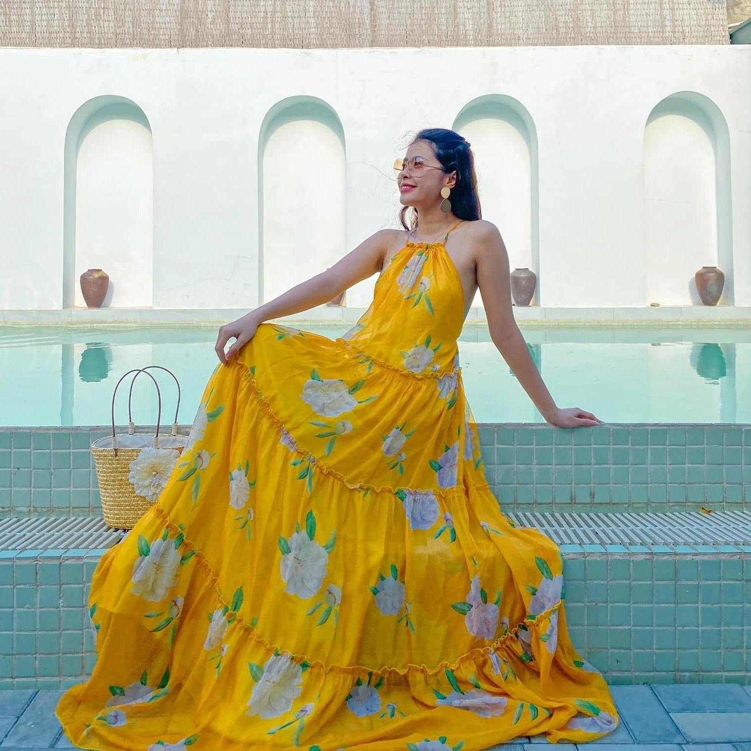 Không gian thiết kế theo phong cách Địa Trung Hải, trang trí xương rồng, khung tre hài hòa. Nơi đây phù hợp cho các bạn thích chụp ảnh. Khách sạn chia làm hai khu với hai hồ bơi khác nhau nên bạn đừng bỏ qua góc sống ảo nào.