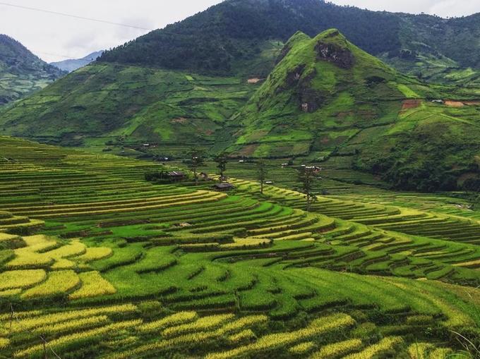 Nếu như năm ngoái lúa ở Hoàng Su Phì, Hà Giang chín sớm vào tháng 9 thì năm nay lại muộn hơn so với các nơi khác. Theo các bạn trẻ đi phượt Hoàng Su Phì đợt lễ 2/9 vừa qua, lúa ở đây vẫn còn xanh, dự kiến sẽ vào mùa gặt khoảng tháng 10. Ảnh: Mạnh Phí.