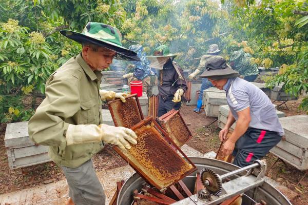Nói về thị trường mật ong, anh Hà cho rằng rất thuận lợi. Mật keo, mật cao su, cánh thợ nuôi ong như anh chủ yếu bán cho các công ty để họ tiêu thụ sang các nước châu Âu. Mật vải, nhãn, cà phê chủ yếu bán lẻ giá cao cho dân, tiêu thụ trong nước, có bao nhiêu tiêu thụ hết bấy nhiêu. “Cứ nuôi ong tốt là có mật, có mật là có tiền. Khí hậu nước ta nhiệt đới, hoa trái quanh năm, mật ong rất nhiều, rẻ nên khi bán ra các nước họ cứ nghĩ mình bán phá giá. Nghe đâu cũng có nước áp thuế bán phá giá với mật ong nước mình. Mà năm nay cũng chẳng phải lo, dịch COVID, nhà nào cũng mua vài lít về dùng nhằm tăng cường sức đề kháng, buổi sáng quay mật, buổi chiều bán hết veo”, anh Hà cười nói.