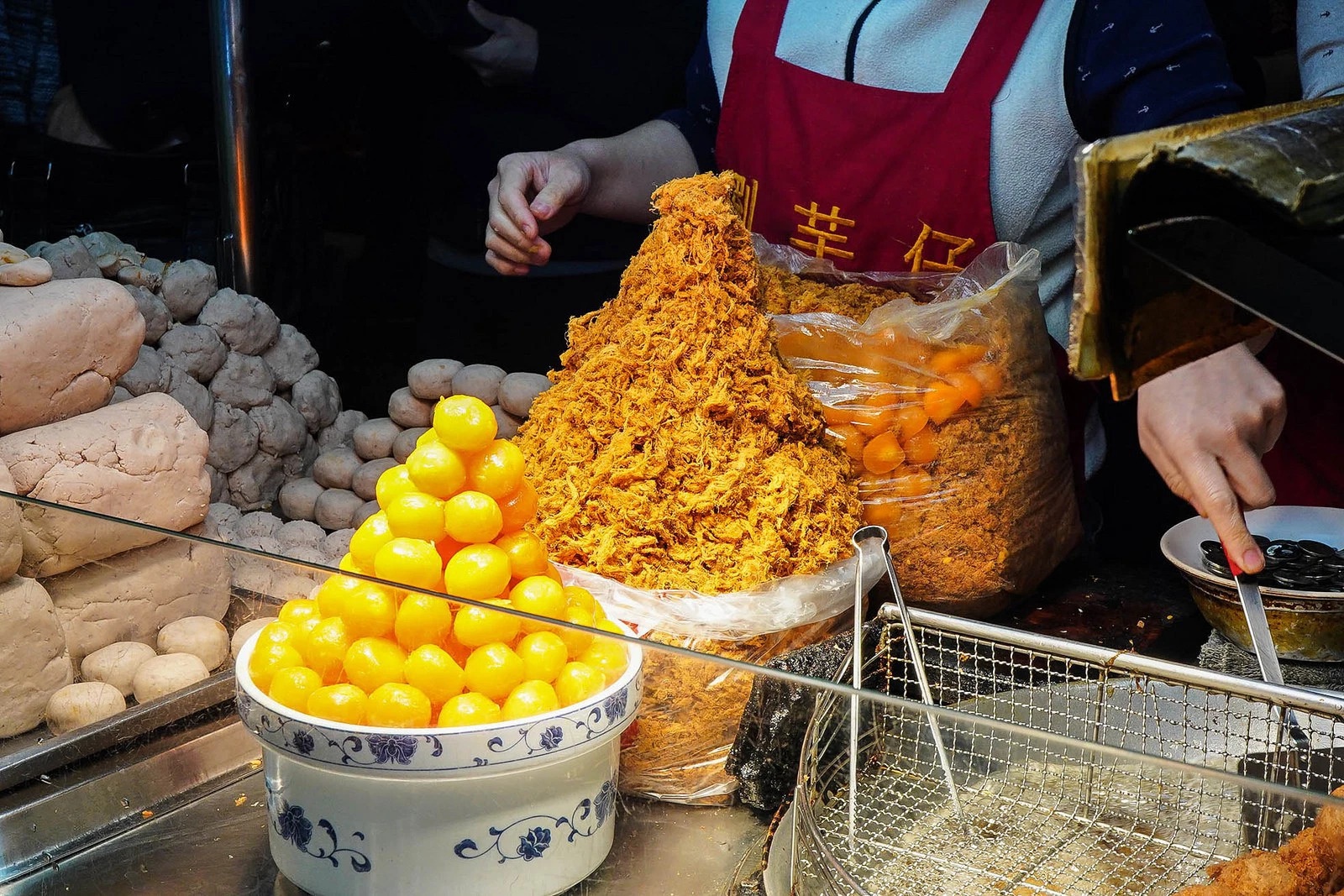Ảnh: Liu Yu ZinCác khu chợ đêm ở Đài Loan là địa điểm được nhiều tín đồ ẩm thực yêu thích. Bánh khoai môn chiên trứng muối là một trong loạt gợi ý không thể bỏ qua ở chợ đêm Ninh Hạ (Đài Bắc). Vỏ bánh được làm từ khoai môn giòn rụm, quyện cùng phần nhân trứng muối, ruốc thịt thơm ngon. Món ăn đường phố này càng hấp dẫn hơn khi thưởng thức vào lúc thời tiết mát mẻ.