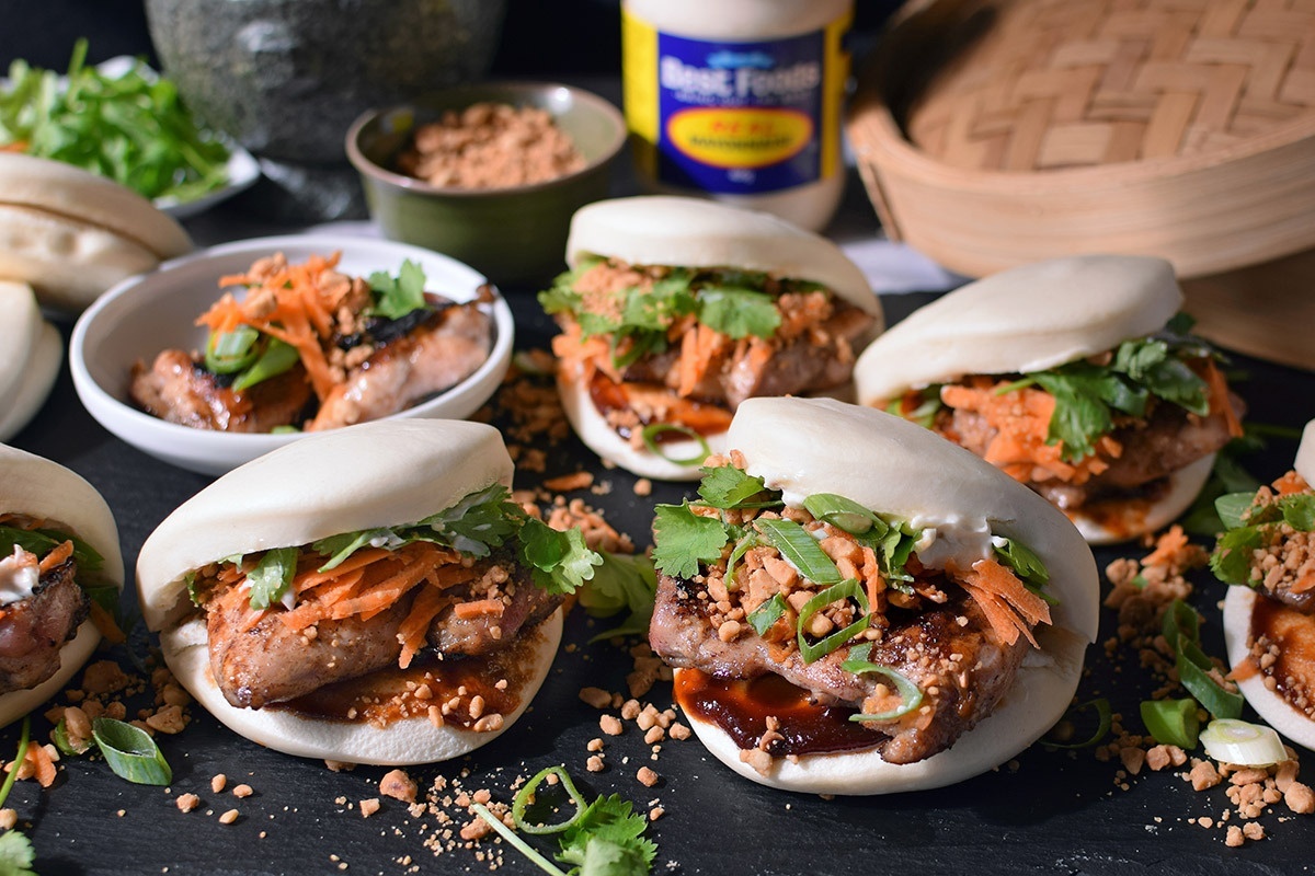 Ảnh: BunnyeatsdesignKhông thể bỏ qua món bánh bao kẹp thịt (guabao) khi nhắc đến những món ăn đường phố đặc trưng ở xứ Đài. Vỏ ngoài bánh được làm từ bột mì hấp. Nhân bánh gồm thịt ba chỉ kho, dưa cải chua để cân bằng độ ngấy của thịt, bột đậu phộng, rau mùi. Dưa cải chua sau khi được muối chín thì cắt nhỏ, xào cho dậy mùi thơm và rắc thêm bột đậu phộng, rau mùi lên trên.Chỉ cần cắn một miếng thật to, hương vị chua, mặn, ngọt, béo sẽ hòa quyện trong miệng, tạo nên trải nghiệm vị giác tuyệt vời.