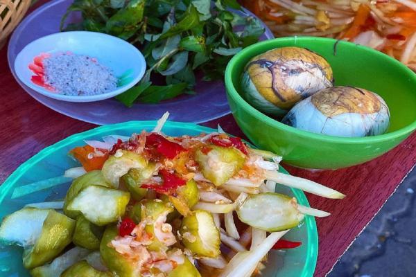 Bạn có thể thưởng thức trứng vịt lộn và cút lộn ăn kèm cóc non, sữa chua thêm một chút muối... khi đến Đà Nẵng.