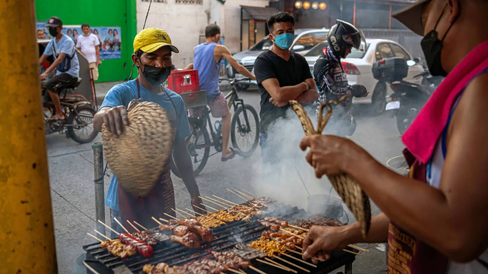 Chiều muộn ở vùng thủ đô Manila (Metro Manila), bên rìa khu thương mại Makati và Pasay, xe cộ tấp nập. Hương thơm ngọt ngào, sực nức không lẫn vào đâu được của thịt nướng trên bếp than từ các quán bên lề đường lan tỏa trong không khí.