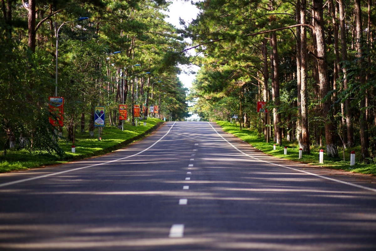 Ở Măng Đen có nhiều con đường được bao bọc bởi tầng tầng lớp lớp núi non, nằm giữa những rừng thông cao. Đi qua những con đường này, thi thoảng bạn sẽ nghe được tiếng suối chảy róc rách.