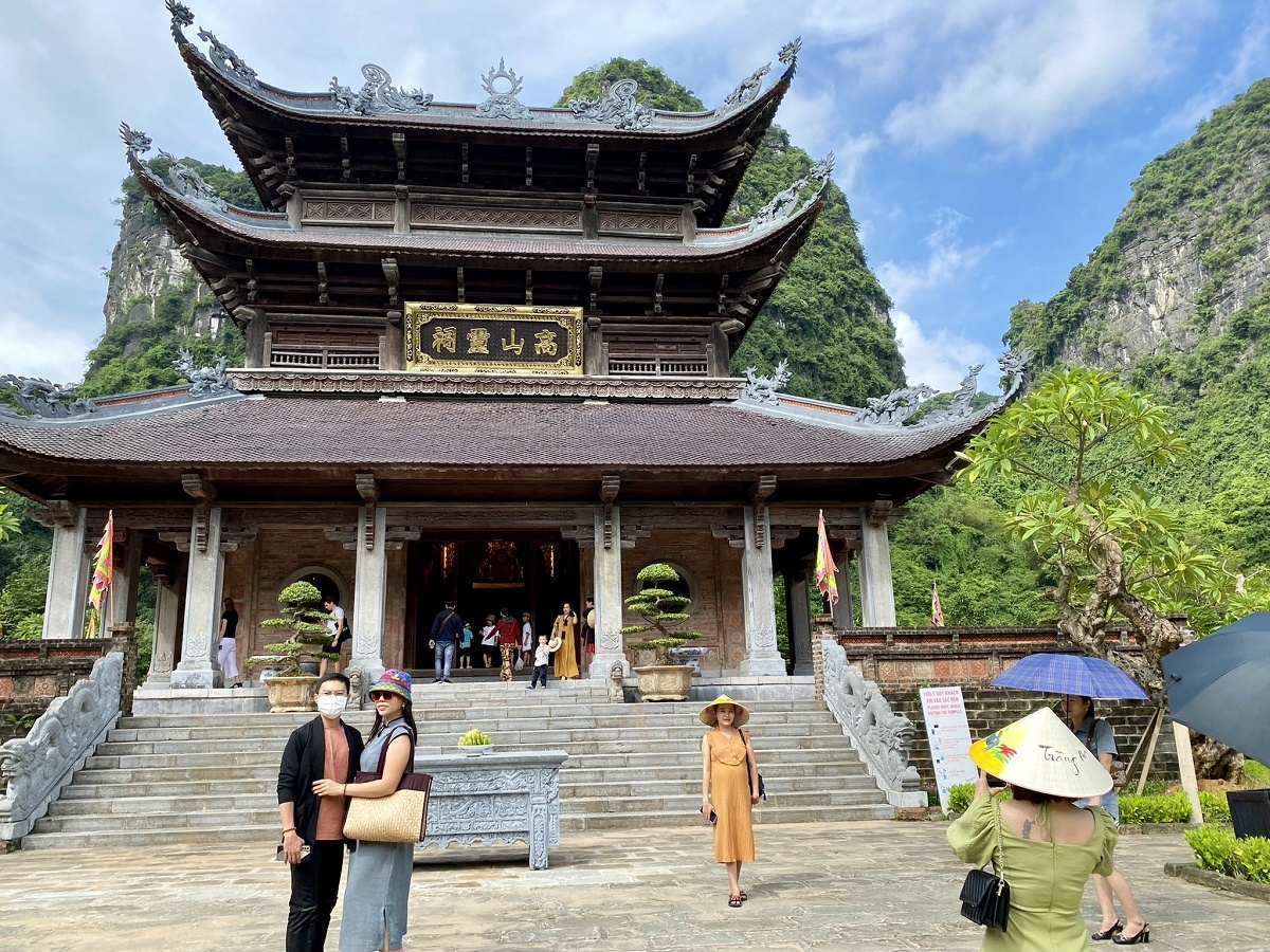 Du khách chụp ảnh kỷ niệm tại Đền thánh Cao Sơn - tương truyền là một trong 50 người con của Lạc Long Quân và Âu Cơ.
