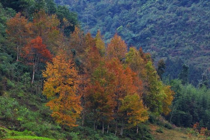 Những hàng cây chuyển màu lá khắp các sườn núi đồi, gợi nhớ rừng phong ở các nước ôn đới.
