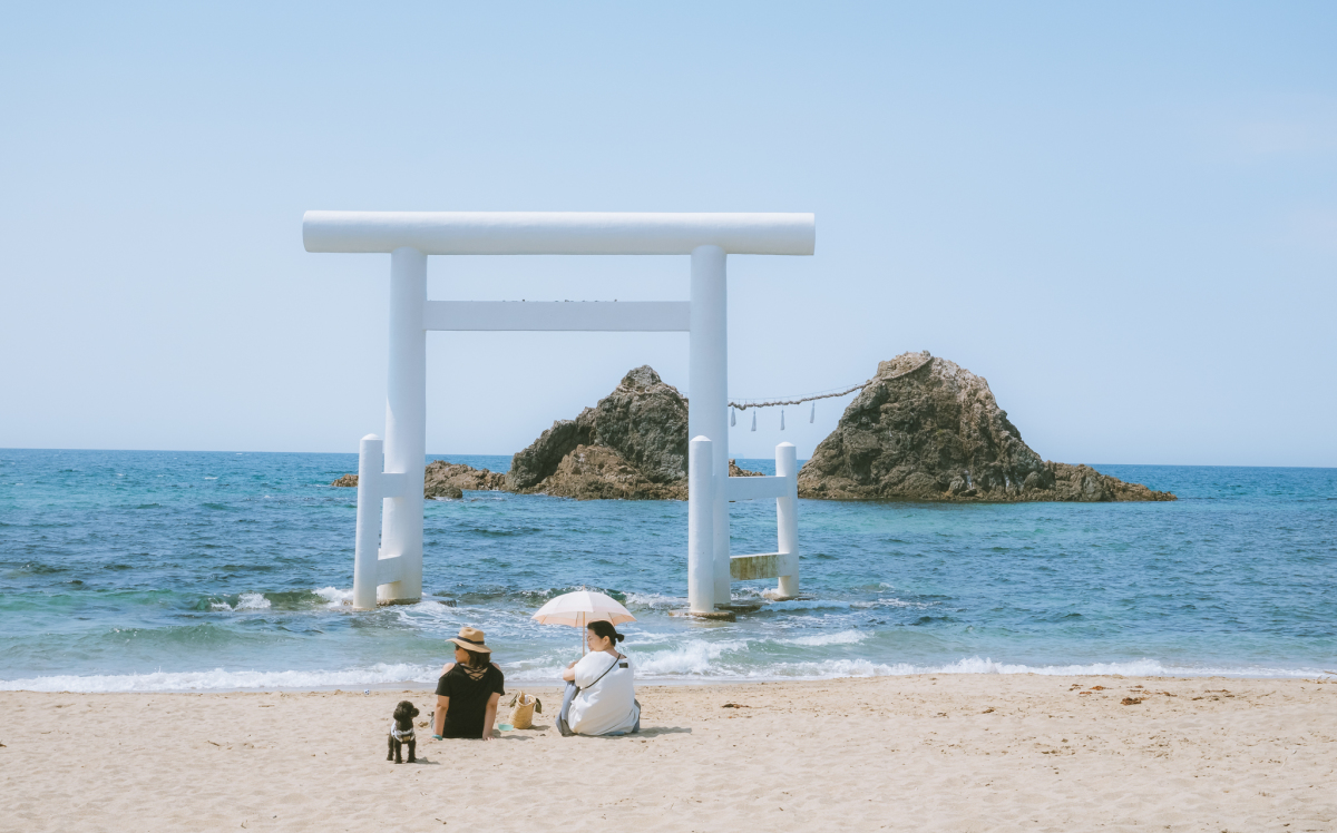 Bãi biển Sakurai Futamigaura nổi tiếng tại thành phố Fukuoka với cánh cổng torii màu trắng hướng ra hai hòn đá phu thê. Tương truyền, Thần đạo buộc dây cho hai hòn đá. Hàng năm, hoạt động thay dây thừng nối hai phiến đá còn được tường thuật trên truyền hình. Sakurai Futamigaura cũng là địa danh nổi tiếng nhất của Fukuoka, vùng Kyushu.