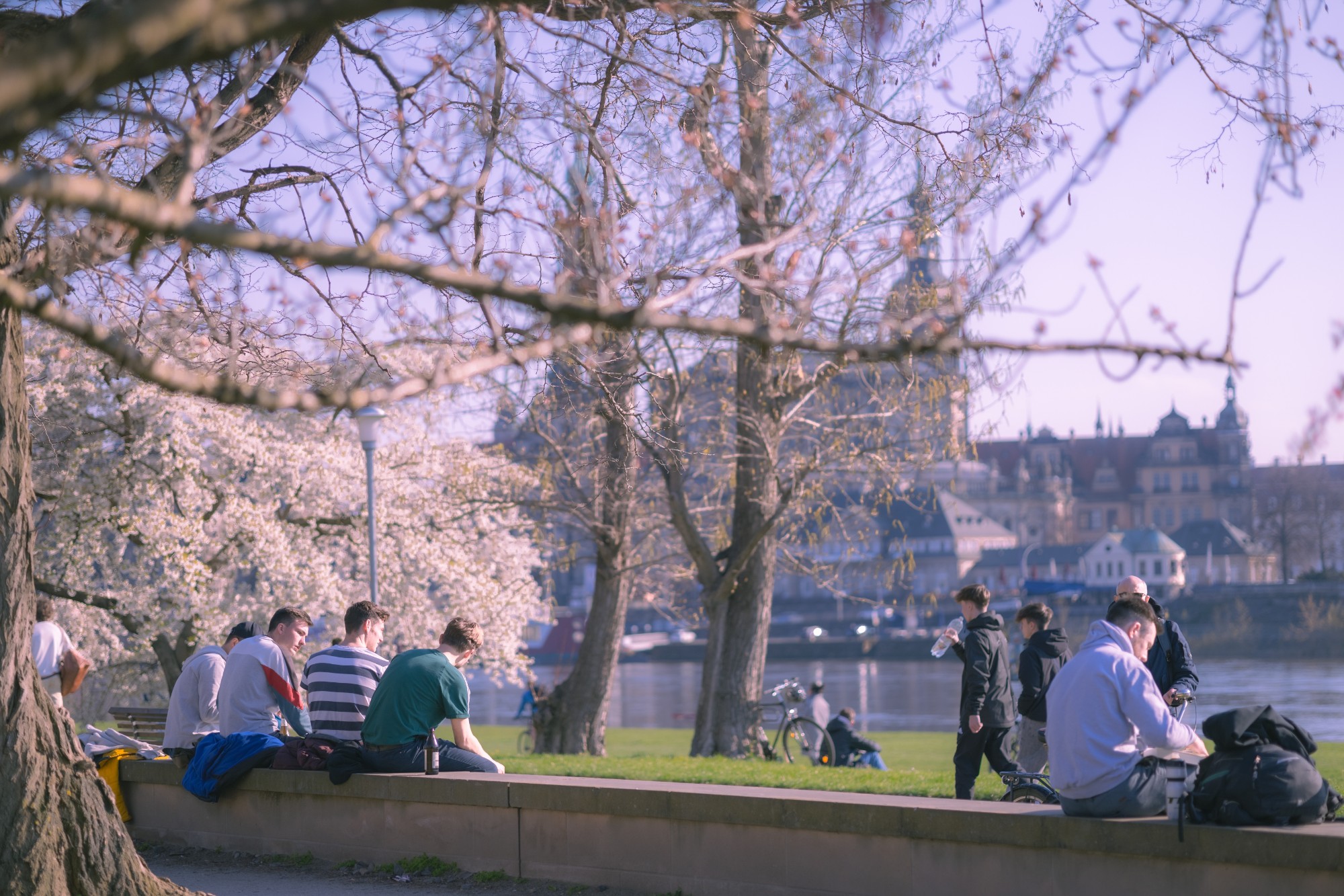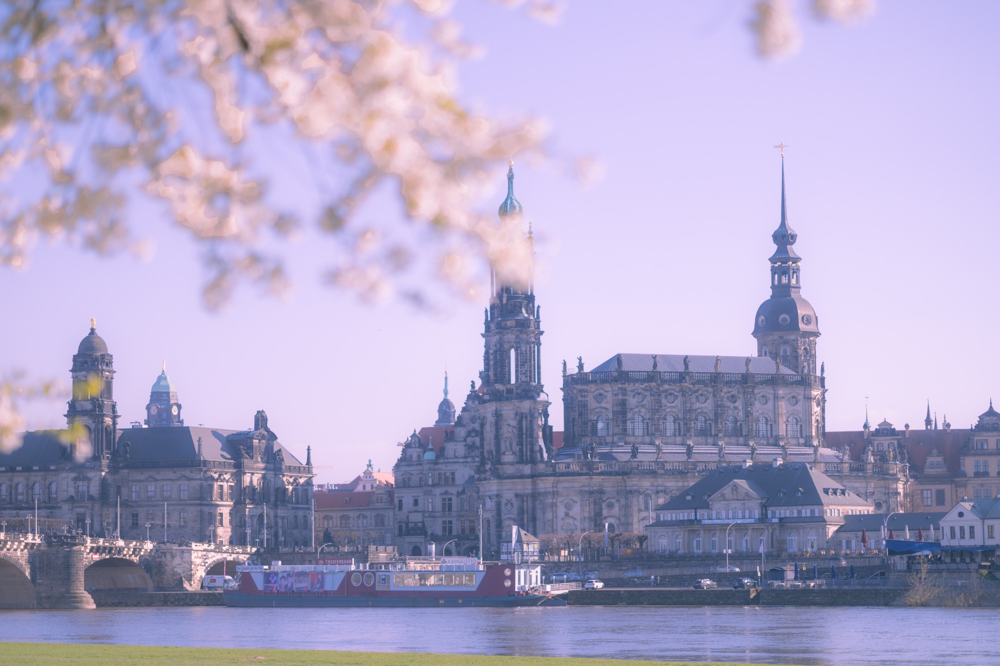 Sắc hoa anh đào hòa quyện cùng nét đồ sộ của các công trình kiến trúc khiến cho khung cảnh Thành phố Dresden vừa mềm mại nhưng cũng tràn đầy sức sống