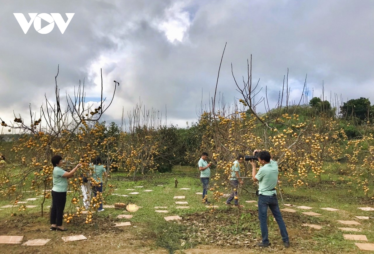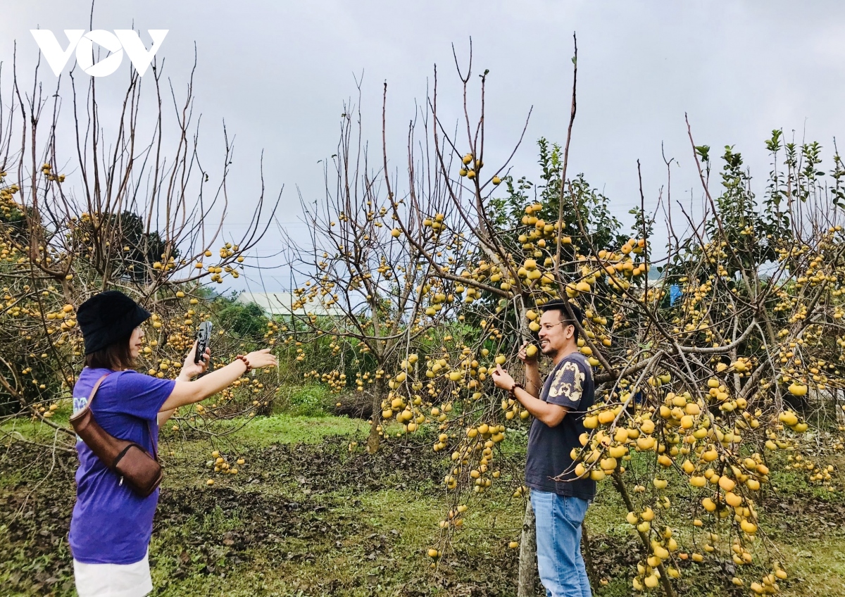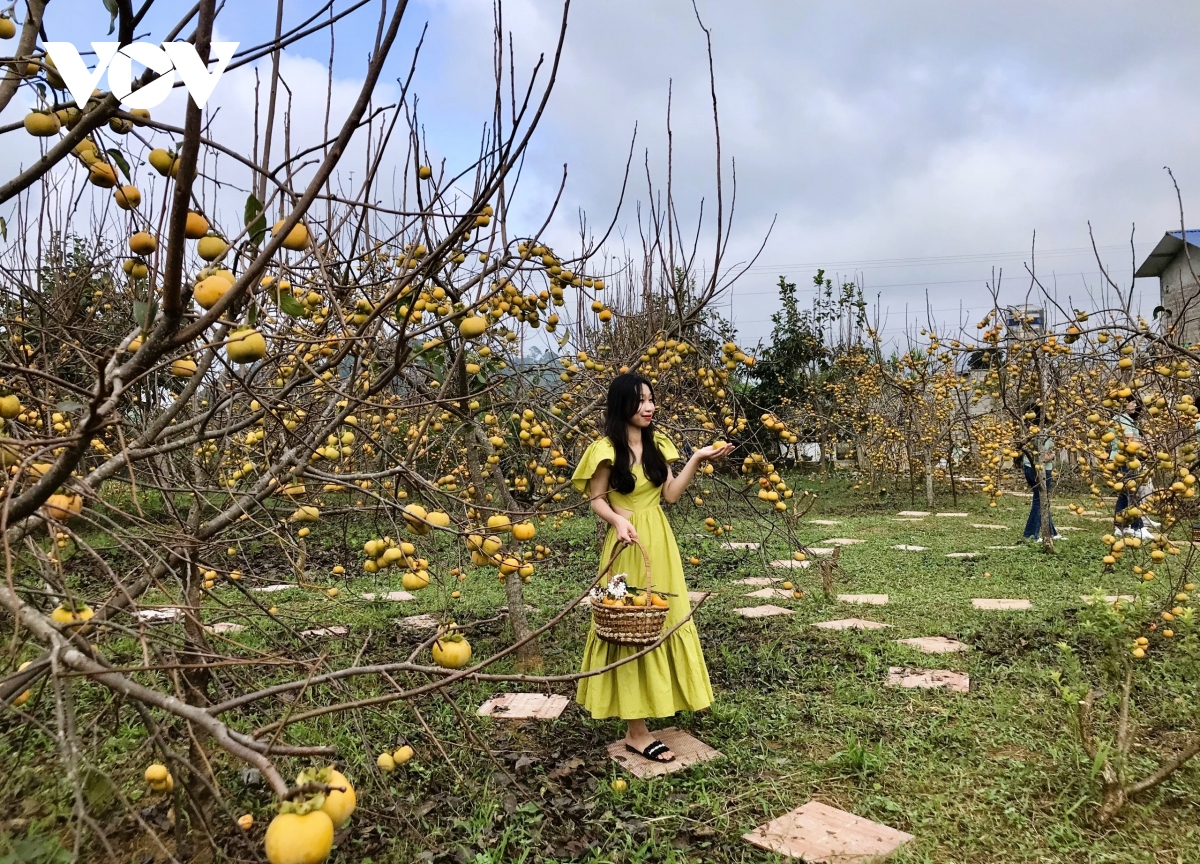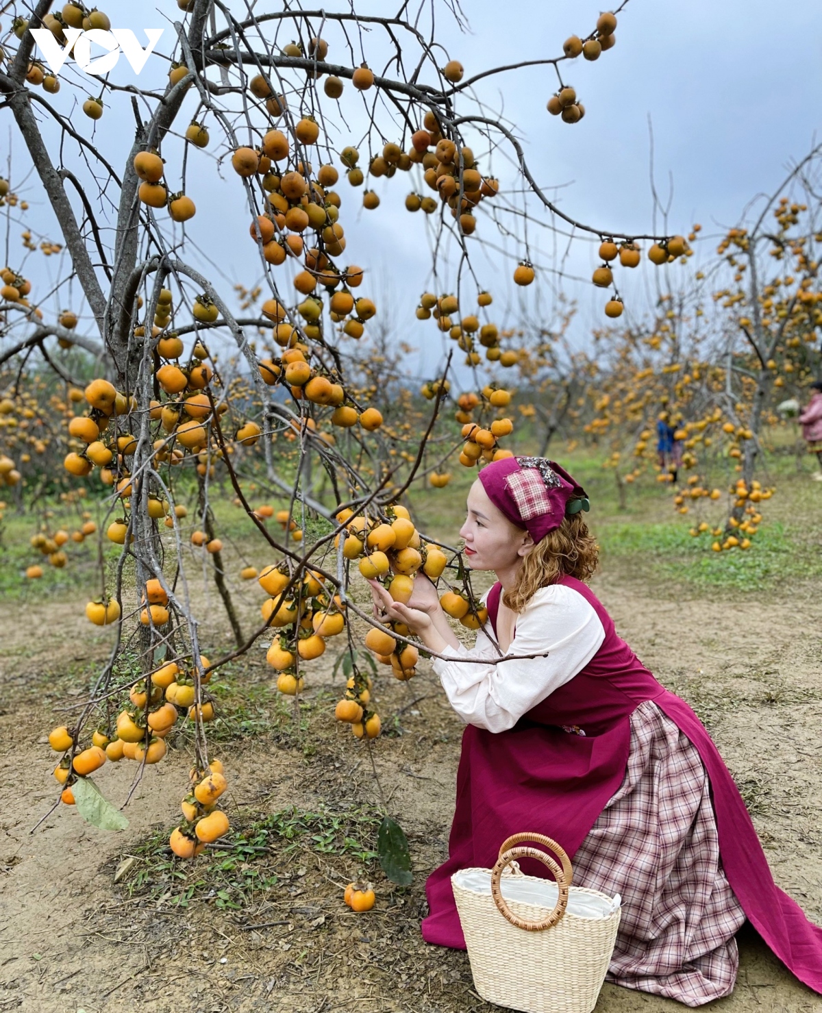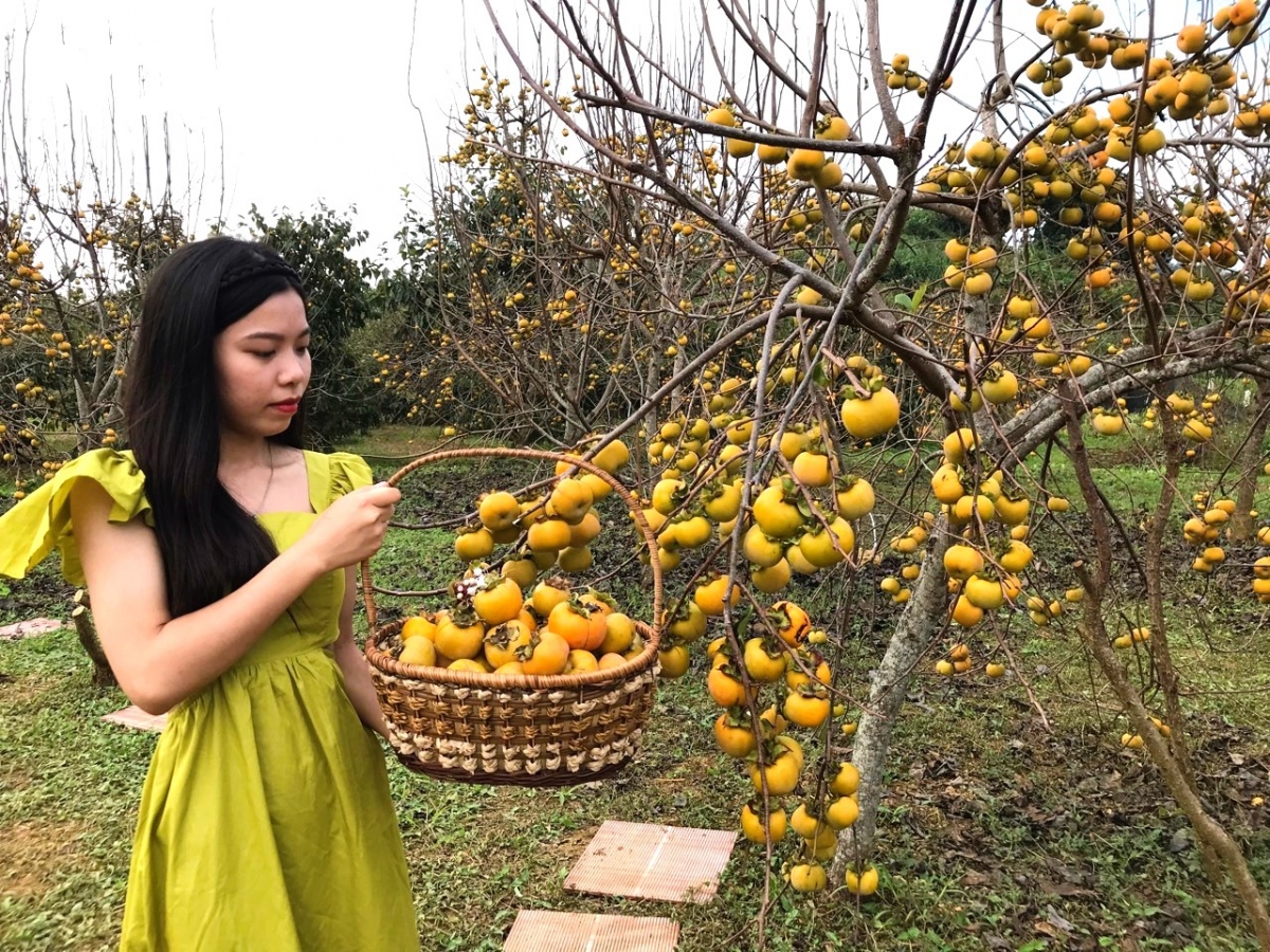 Không chỉ là sản phẩm độc đáo để du khách thưởng thức và mua về làm quà, mùa hồng chín ở Mộc Châu còn thu hút du khách tới chụp ảnh và check-in.