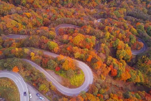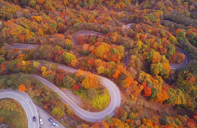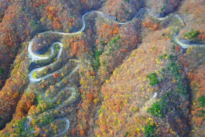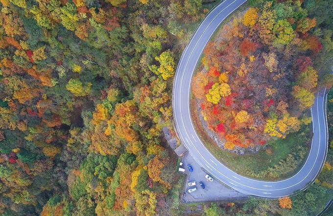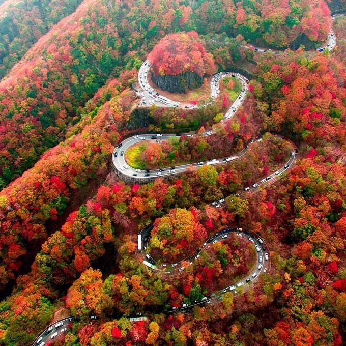 Con đèo Irohazaka chạy qua những vạt rừng mùa thu thay lá ngập tràn sắc đỏ, vàng tạo nên cảnh tượng ngoạn mục.