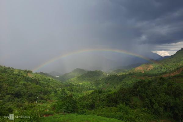 Trước những cơn mưa, mây mù kéo đến thì thỉnh thoảng xuất hiện cầu vồng tạo nên khung cảnh tuyệt đẹp giữa núi rừng.