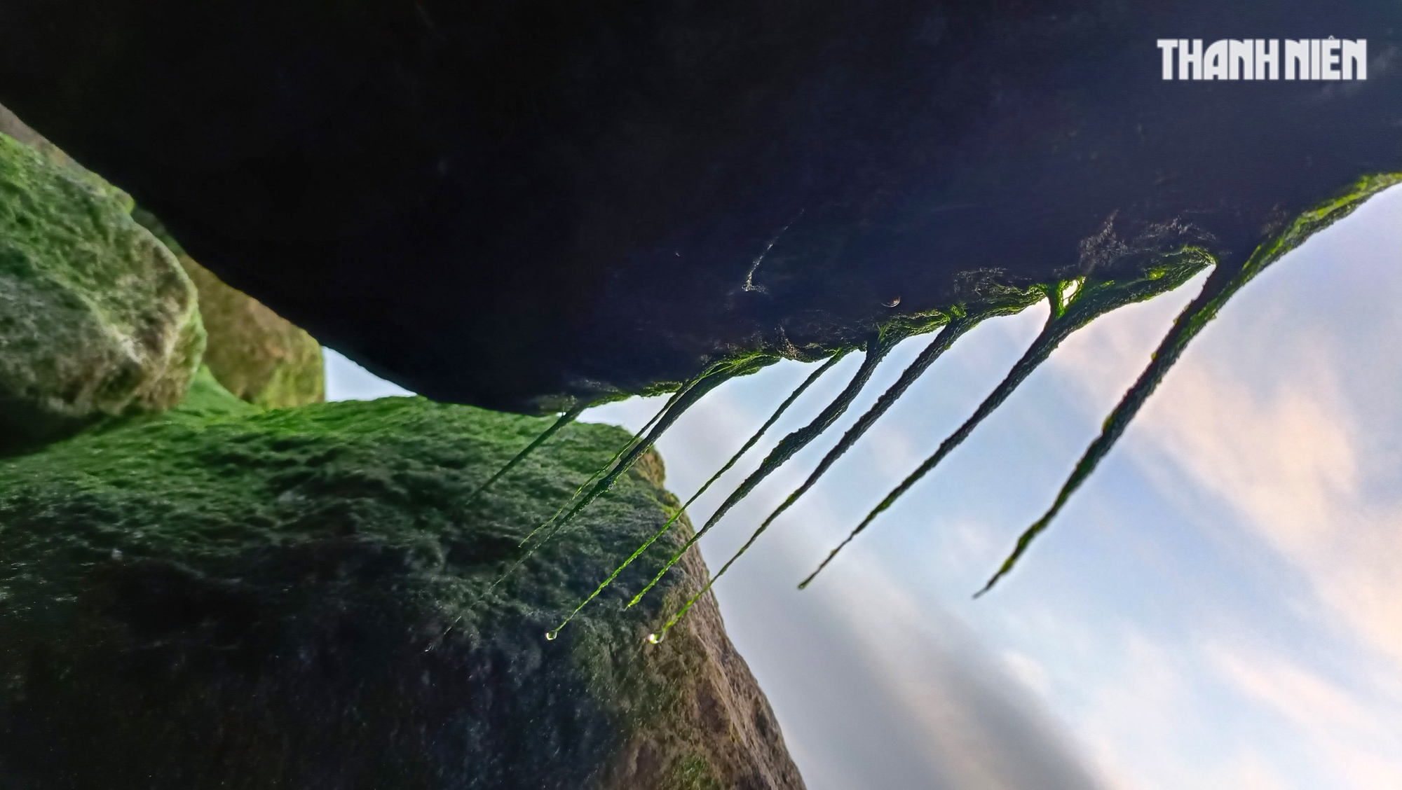 Rêu bám vào đá, có cọng dài gần 20cm